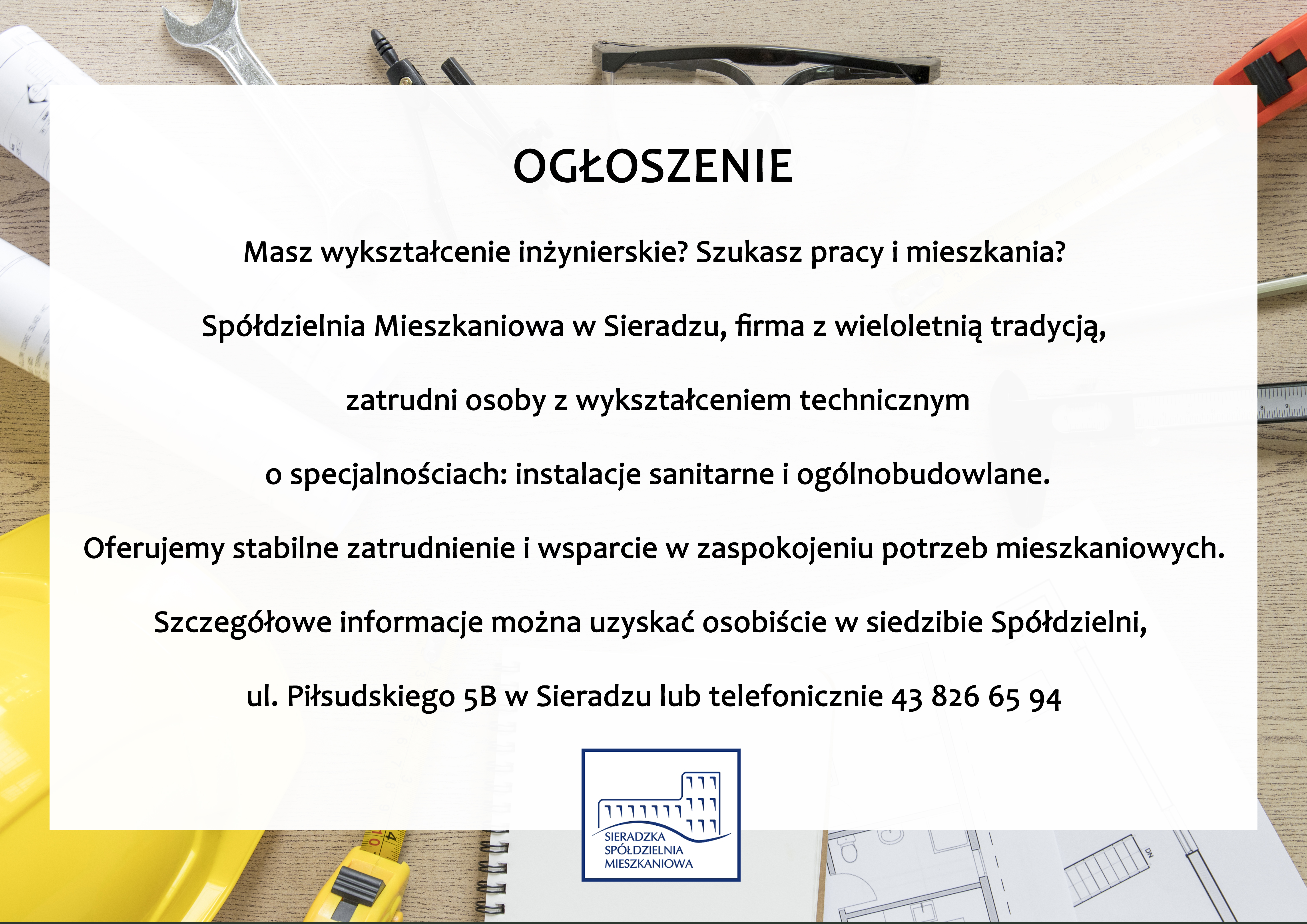Sieradzka Spółdzielnia Mieszkaniowa zatrudni wykwalifikowanych pracowników